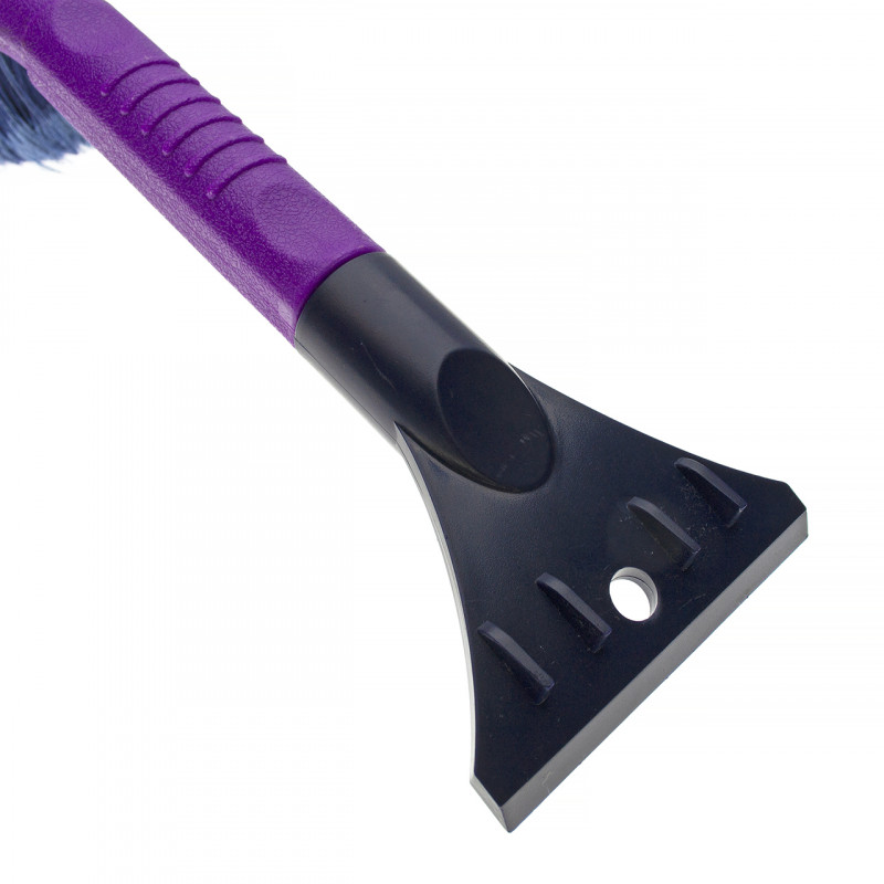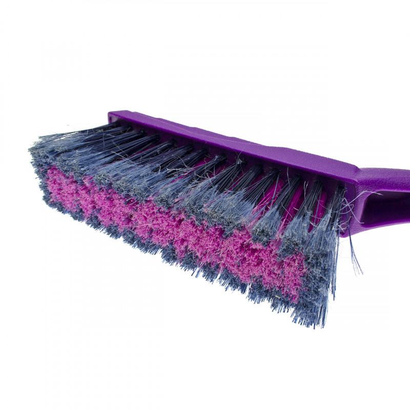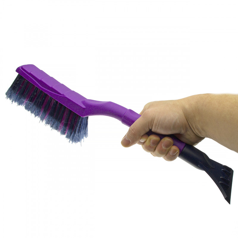 Автомобильная двусторонняя щетка, длиной 420мм. С одной стороны усиленный мощный скребок с зубьями-ледоколами, 87мм шириной, для удаления льда со стекол, а с другой стороны упругая, распущенная 4х рядная щетина средней жесткости, длиной 165мм, шириной 40мм и высотой 55мм. Корпус рукоятки выполнен из ударопрочной пластмассы.
