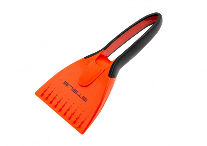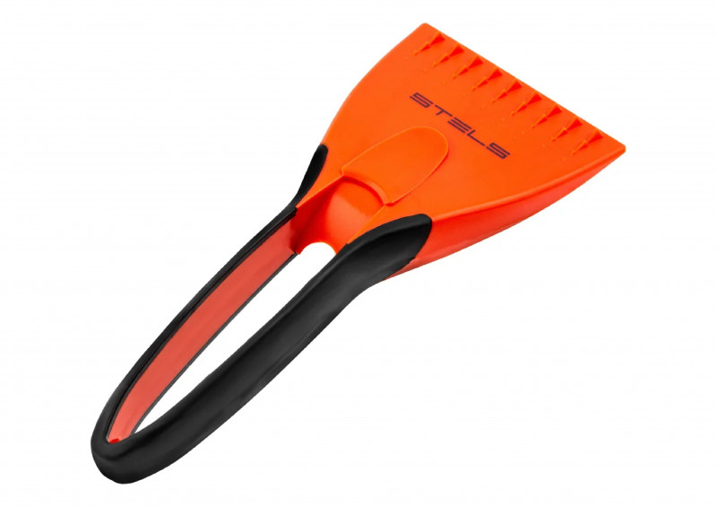 Скребок для льда Stels 55286 с двухкомпонентной рукояткой помогает удалять снег и наледь со стекол, зеркал и кузова автомобиля. За счет своей портативности он легко помещается в бардачке.