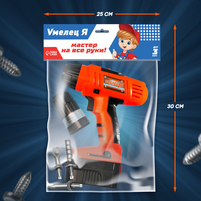 Игровой Набор инструментов Дрель 3 насадки работает от батареек