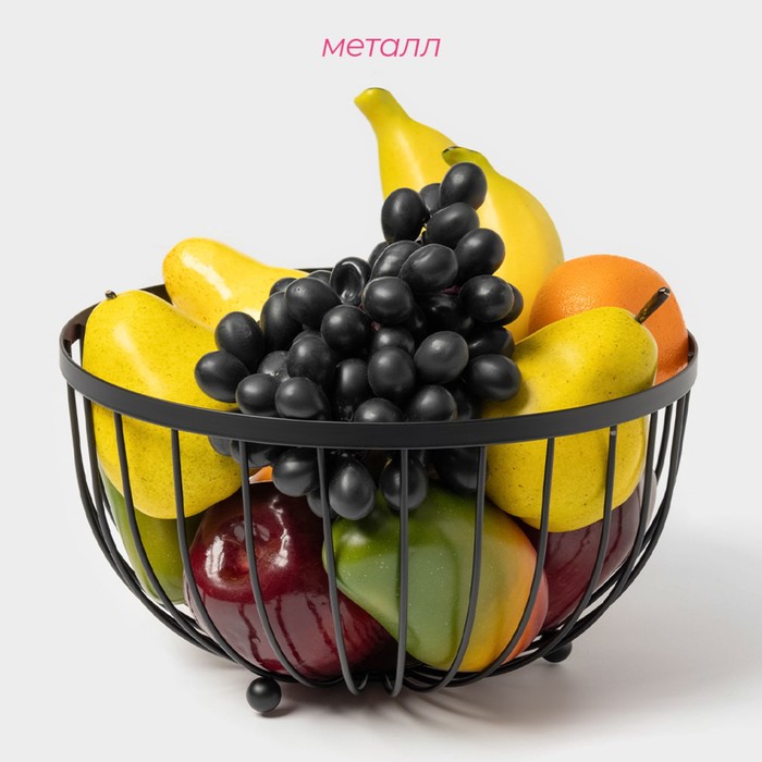Стильная ваза для фруктов станет идеальным дополнением любого интерьера. Корзинка выполнена из окрашенного металла, что защищает её от коррозии. Благодаря оригинальному дизайну, фруктовница станет украшением вашей кухни или праздничного стола. Удобная конструкция позволит дольше сохранить фрукты свежими.