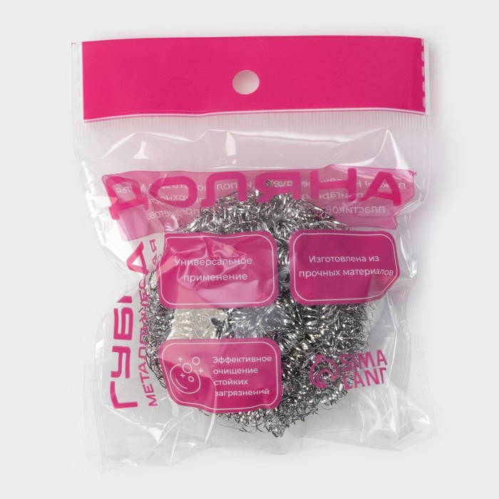 Отличается высокой эффективностью, износоустойчивостью и долговечностью. Благодаря форме изделие применяется в труднодоступных местах. Моющая часть не деформируется даже при длительной эксплуатации. Металлическая губка требует меньше усилий при работе с сильнозагрязнённых поверхностей и позволяет легко удалить подгоревшие продукты и жир.
