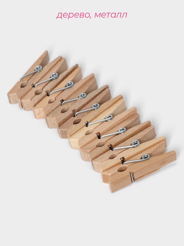 Прищепки деревянные бельевые изготовлены из высококачественной древесины, пружина из стали.