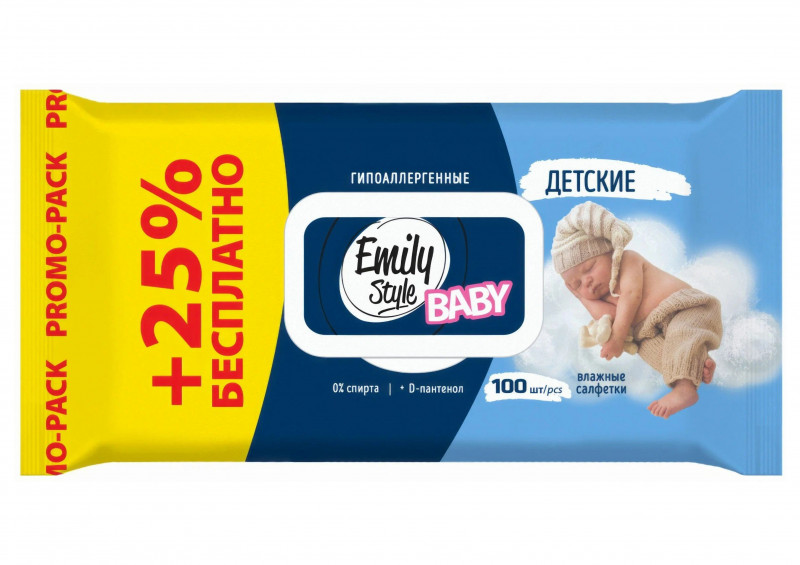 Салфетки влажные Emily Style 100шт с крышкой