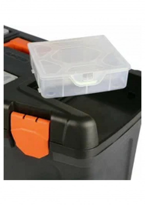 Ящик помогает содержать в порядке и быстро находить необходимые инструменты и принадлежности к ним. Идеален для использования дома, на даче, в гараже, мастерской, в автомобиле. Хранение инструментов в ящике защищает от пыли и грязи. Наличие ручки позволяет переносить инструменты на место выполнения работ. Съёмный внутренний лоток позволяет отделить инструменты и аксессуары первой необходимости от основного отсека. С помощью нанесённой на лоток размерной линейки можно быстро произвести измерения. Крышка ящика оснащена съёмными органайзерами для хранения мелочей (внутреннее пространство изменяется под потребности за счёт подвижной перегородки) и отсеком для хранения битов. Возможность использования навесного замка защитит содержимое от свободного доступа, в том числе обеспечит безопасность детей.