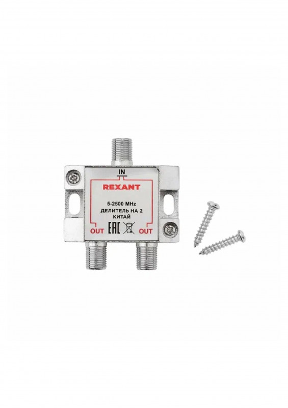 Разветвитель ТВ 2-выхода F-разъем 5-2500 МГц СПУТНИК Rexant 05-6201