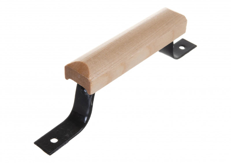 Деревянная ручка-скоба с металлическим креплением устанавливается на входные двери.
