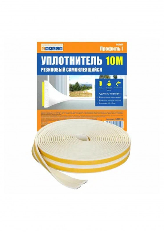 Уплотнитель для окон и дверей WALLS I-профиль резиновый белый 10м