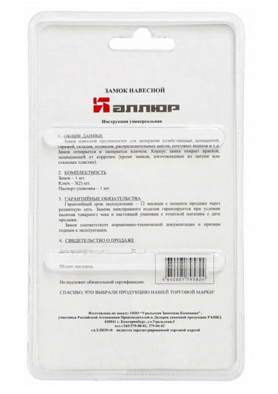 Замок навесной ВС2С-501 d-9мм Аллюр черный в наличии по цене 650 рублей в интернет-магазине «ЖЕЛЕЗО» в в Новосибирске. Мы предлагаем лучшую стоимость на категорию замок навесной. Приобрести Замок навесной ВС2С-501 d-9мм Аллюр черный можно оформив заказ в интернет-магазине, или отправив заявку по почте, а также по телефону 8 (800) 444-50-26 или в магазине. Бесплатная доставка при заказе от 1000 руб.