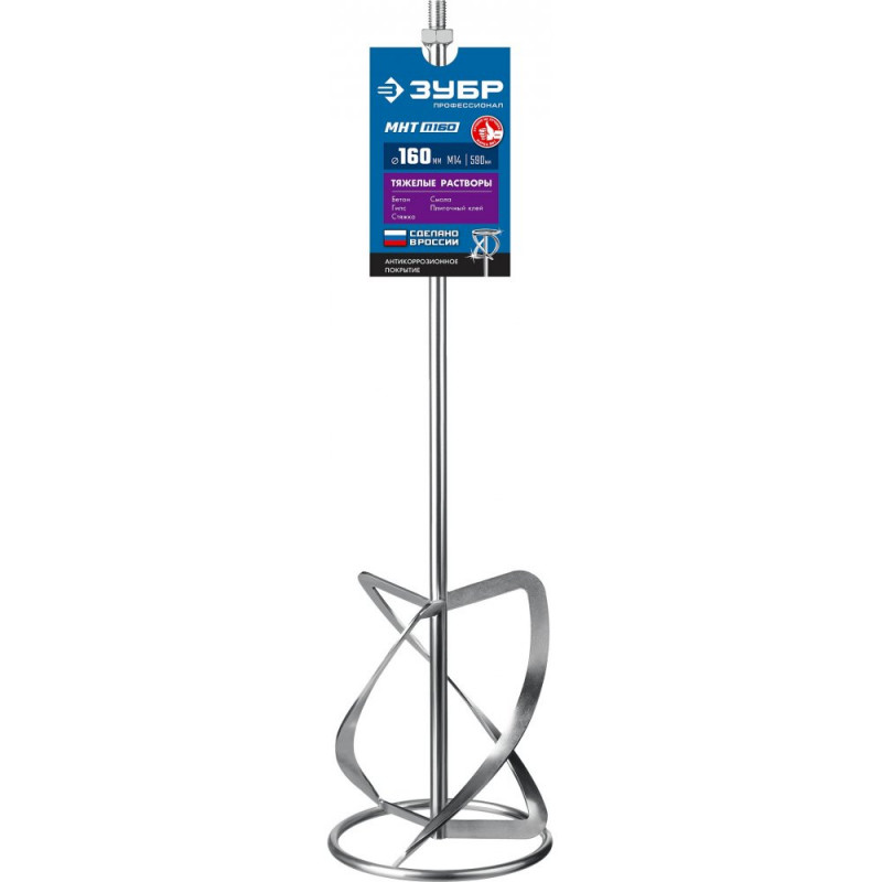 Насадка с лопастями для перемешивания тяжелых растворов (бетон, гипс, стяжка, смола, плиточный клей, известково-глиняный раствор). Используется совместно с ручными миксерами ЗУБР ЗМР-1200Э-1, МР-1050-1, МР-1100, МР-1400-2 и МР-1600-2. Не поддается коррозии и не деформируется даже при эксплуатации в тяжелых условиях. Сделано в России