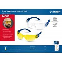 Очки защитные желтые отрытого типа ЗУБР Прогресс